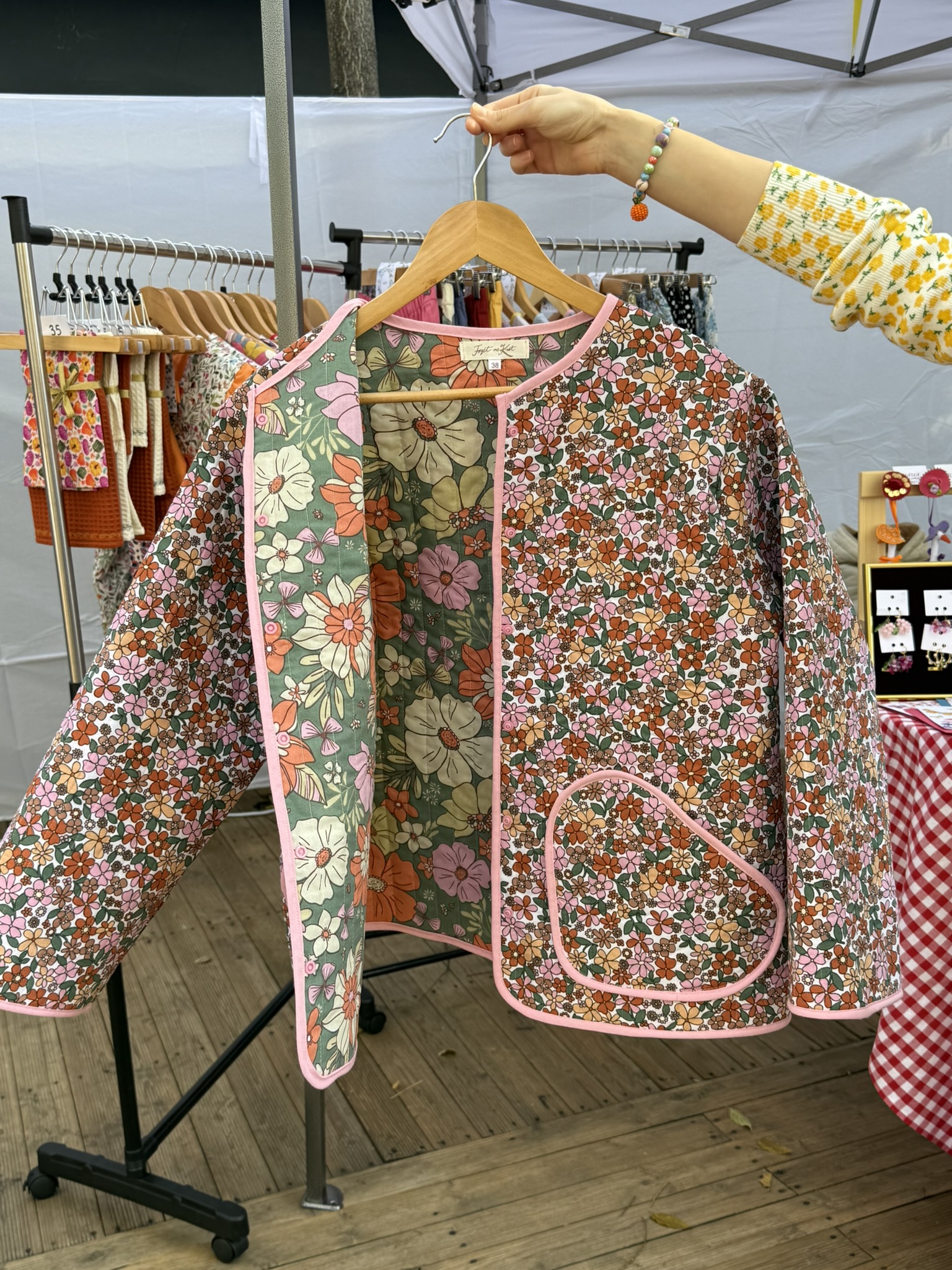 Geaca matlasată cu flori multicolore este alegerea ideală pentru o ținută de toamnă/primăvară veselă, feminină și plină de personalitate. Realizată din materiale confortabile și plăcute la purtare, această geacă se remarcă prin imprimeul floral viu și prin marginea roz.